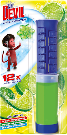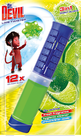 Dr.DEVIL WC bodový blok 3 v 1 Lime voní, čistí a preventivně působí proti usazování vodního kamene. Doba působení jedné kytičky je cca jeden týden. Dr.DEVIL WC bodový blok 3 v 1 s vůní limetky se postará o dlouhotrvající hygienickou svěžest při každém spláchnutí.